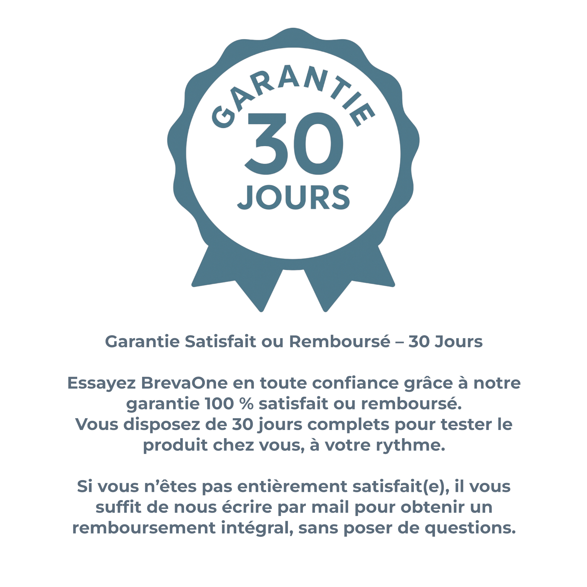 C’est très simple. Essayez BrevaOne™ pendant 30 nuits. Si vous ne constatez aucune amélioration, il vous suffit de nous contacter à support@neravio.com — vous serez remboursé intégralement, sans aucune condition.