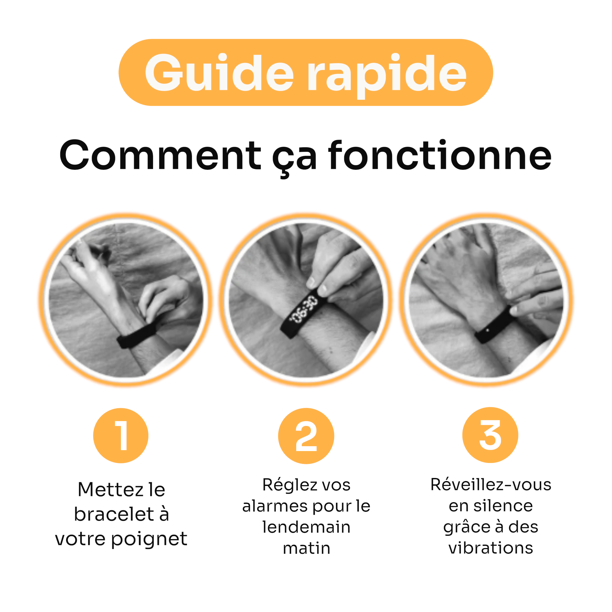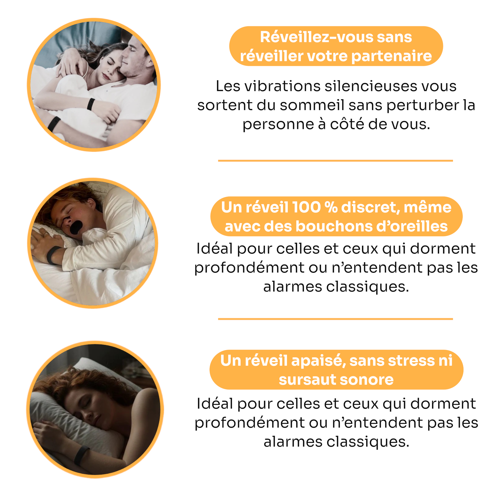 Dès la première nuit, la vibration douce de Zenwake® vous réveille sans sonnerie, sans stress — une sensation nouvelle, immédiate.